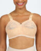 The Angel Bra is made of a sturdy lace and PowerNet material that provides excellent benefits to smooth, equalize, and completely reshape your bust without underwire.
